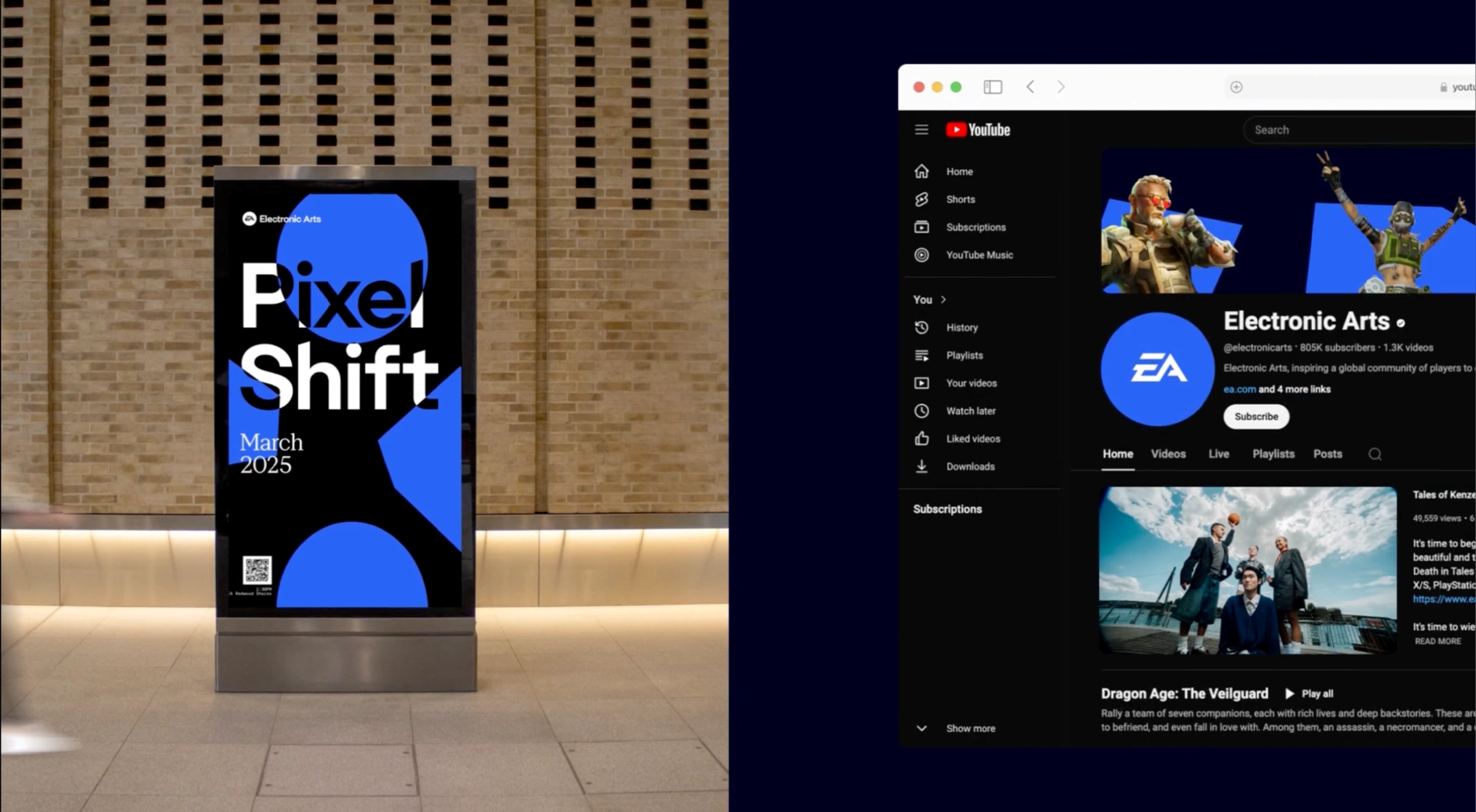 We partnered with EA to evolve it from a game publisher into a broader entertainment brand. By expanding its iconic shapes, refining type families, and building a vibrant palette around heritage blue, we created a flexible visual system that honors EA’s legacy while pushing it forward. A motion-first language and toolkit keep the identity feeling alive and scalable across campaigns, sub-brands, and platforms.